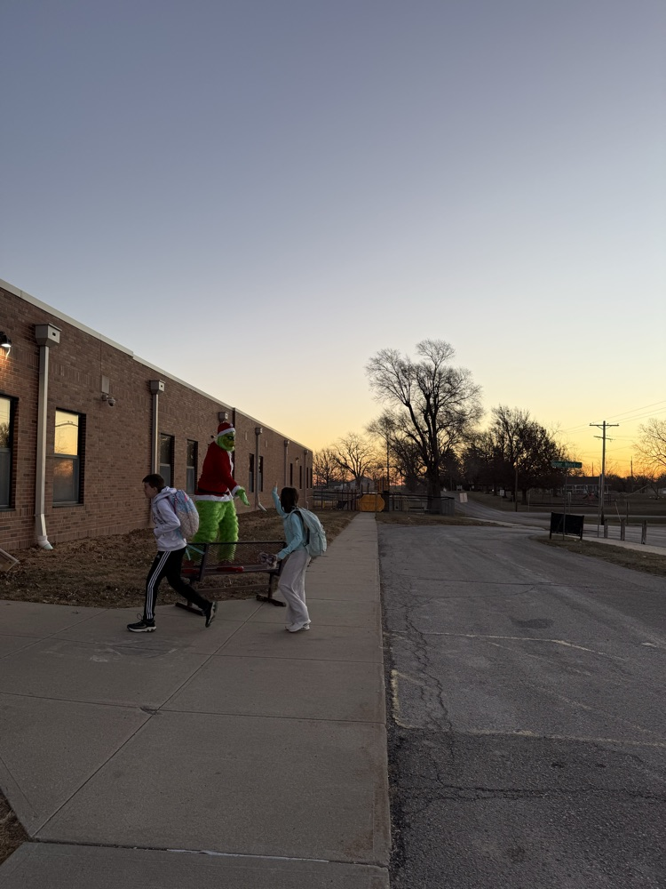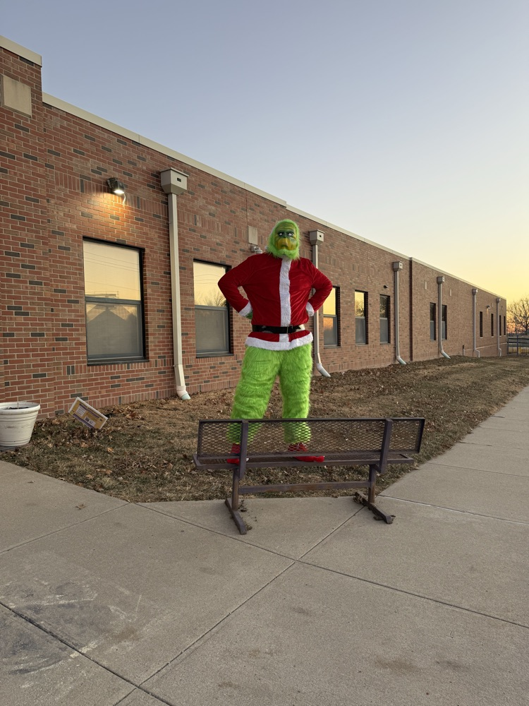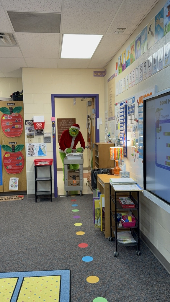 The Grinch showed up to greet the KCE students this morning! He also delivered cards to the teachers and pencils for the students!