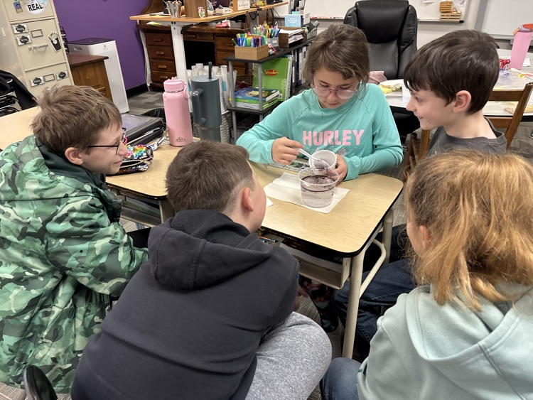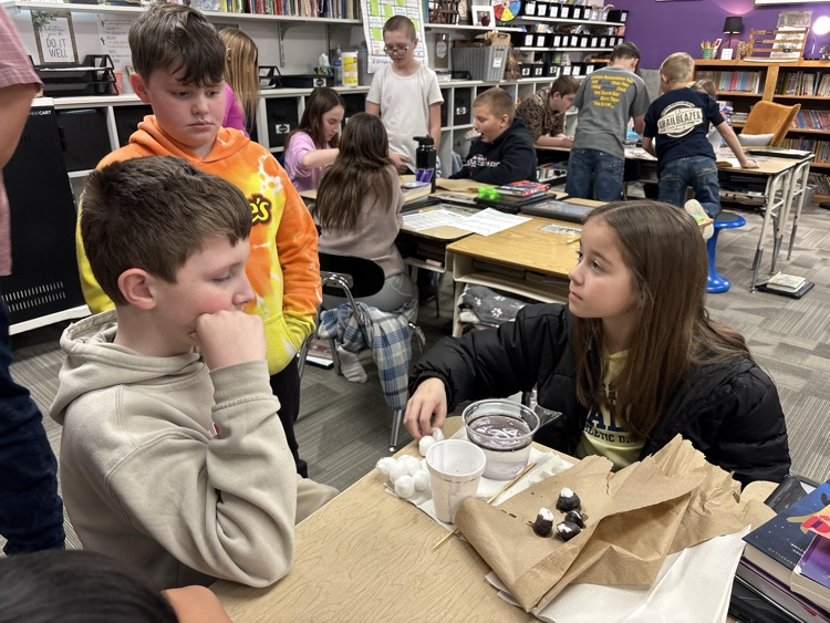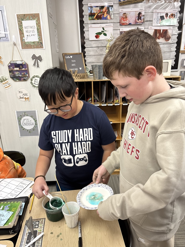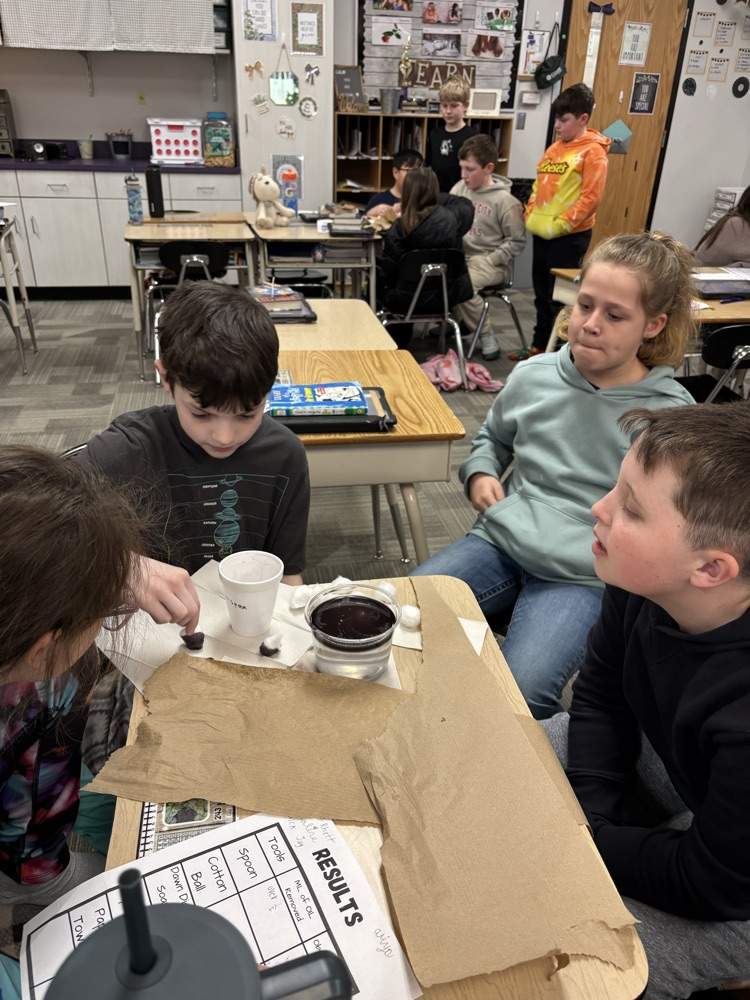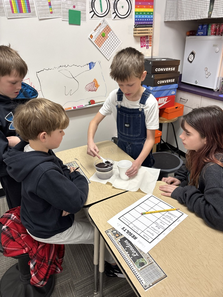 4th graders investigated how hard oil spills are to clean; they used a variety of resources to try to clean the oil spill.