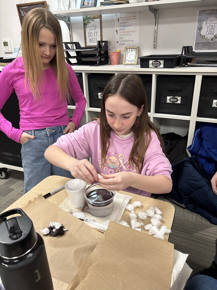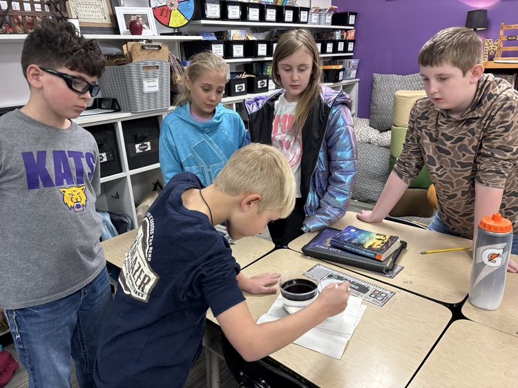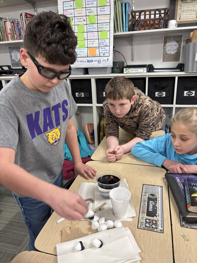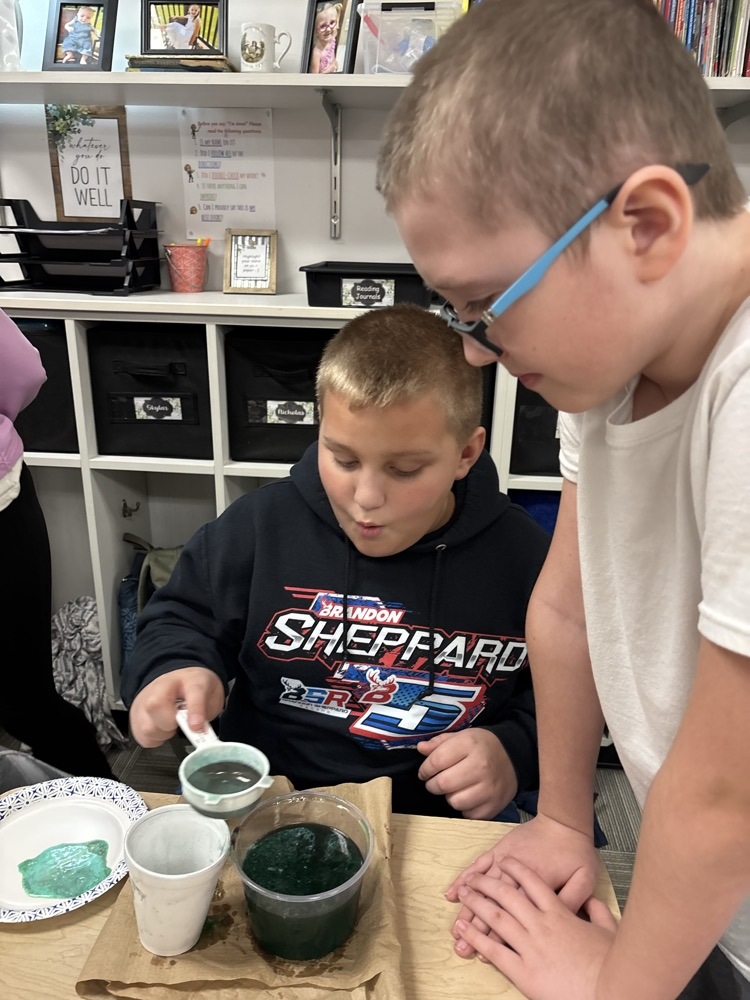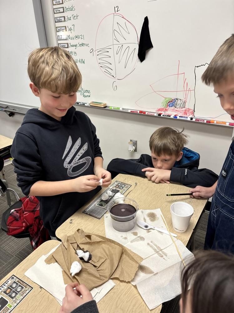 4th graders investigated how hard oil spills are to clean; they used a variety of resources to try to clean the oil spill.