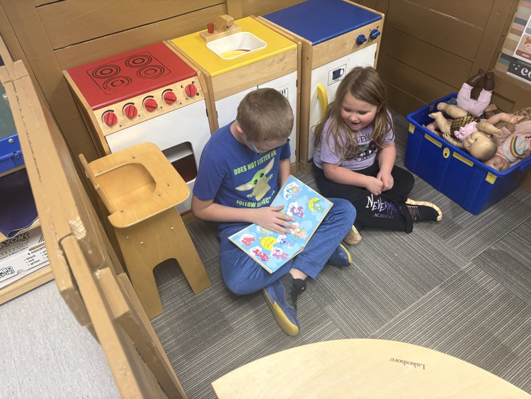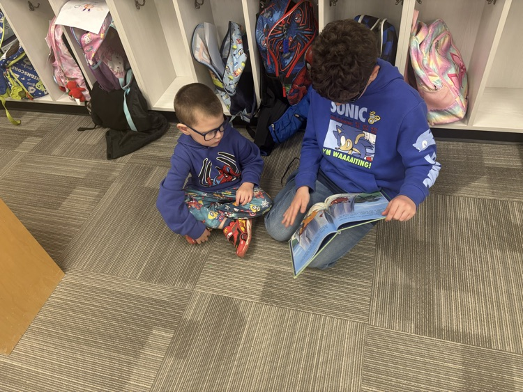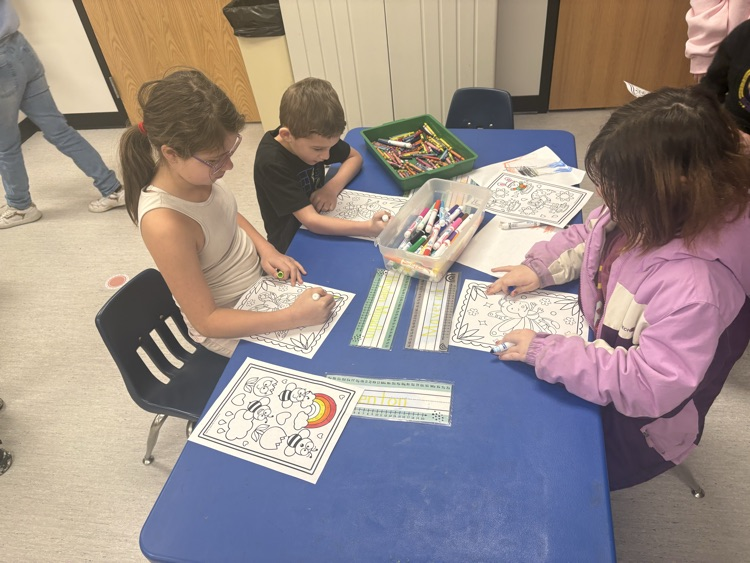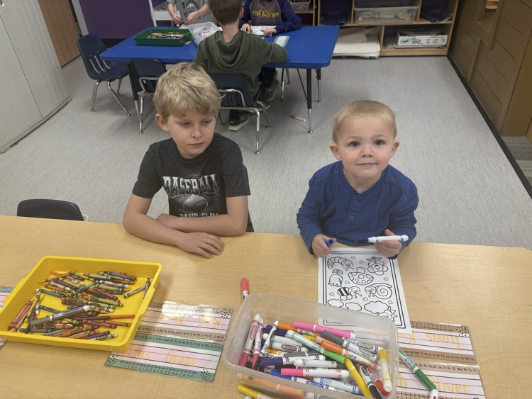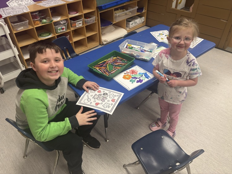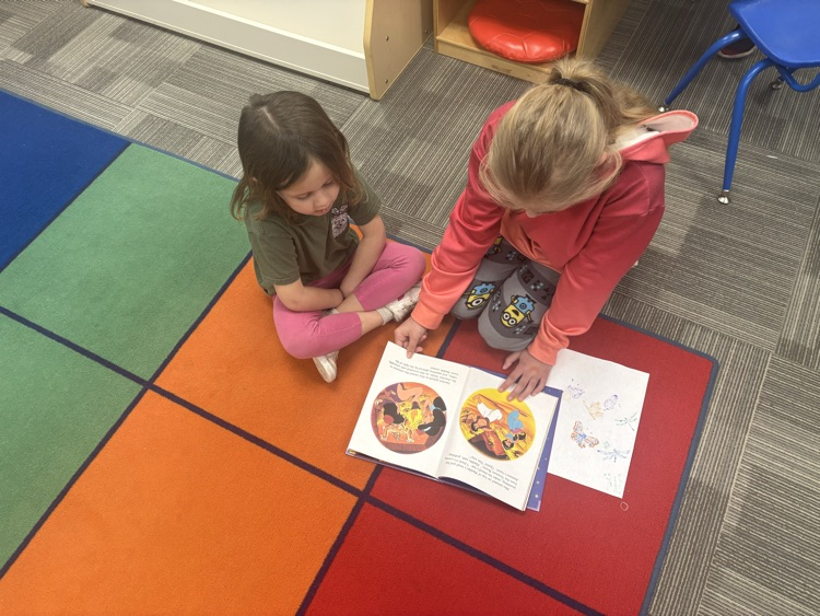 Fourth grade and preschool have been meeting once a month to read and do activities all year; the fourth graders' favorite day of the month is preschool buddy day. 📚✂️✏️🖍️